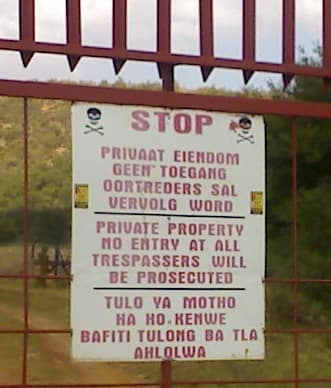 7. Boere moet hul plaashek sluit en ‘n bord op die hek installeer wat oortreders op die eiendom verbied. Sowat 89% van Boere maak hulle skuldig hieraan en wil dan mense aanrand as hulle op die plaas gevang word.